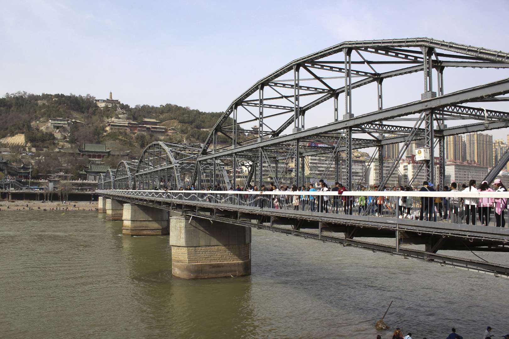 黃河鐵橋位于蘭州城北的白塔山下、金城關前,有"天下黃河第一橋"之稱,是蘭州市內標志性建筑之一。鐵橋建成之前,這里設有浮橋橫渡黃河。浮橋始建于明洪武年間(公元一三六八至一三九八年),名叫鎮遠橋,今尚存建橋所用鐵柱一根高達三米,重約數噸,上有"洪武九年"字樣。