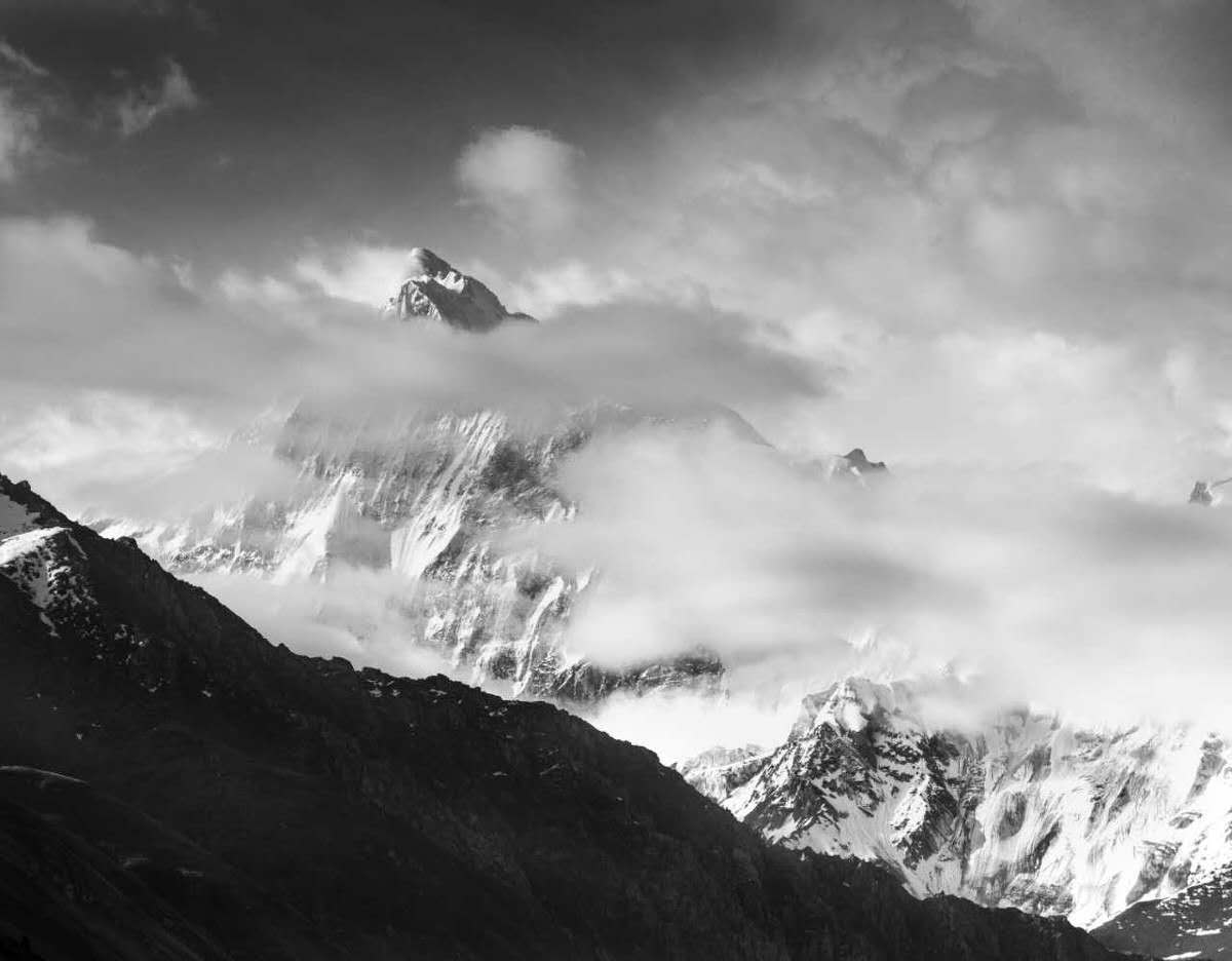 木扎爾特冰川是世界上絕無僅有的天然冰川,險隘處處,危機四伏,冰川、冰縫、冰河、冰塔、冰山以及洶涌的木扎爾特冰河都會給人難以想像的危險。我們有些凍僵了的身軀,只能依靠自己體力和毅力,在絕境處尋覓,在高海拔的冰川上艱難地前行。人行走在漫長的冰川上,就像行走在煉獄之上,如果雙腳行走不穩或身體不能平衡支撐,就很可能帶來滑倒的生命危險。可以想像如果稍不小心一下子滑倒,跌進萬丈冰窟深淵,后果殘忍不堪。臨近傍晚,我們繼續踏著冰川前行。由于冰川的退縮,冰川末端落差很大,這短短300米的距離落差竟達500米,而這段路線是木扎爾特冰川最為艱難險峻的路段。如果想下到谷底,想都不要去想,因為此處更是危險。我們艱難地下了冰川后,就進入了南木扎爾特河谷,河谷愈來愈寬闊,時下正值夏季,冰雪在盡情地消融,近800米寬的河床到處都是水。在河的東岸,有一處100多米長,近150米高的陡壁,滔滔河水從陡壁流過,冰川由此而中斷。