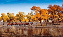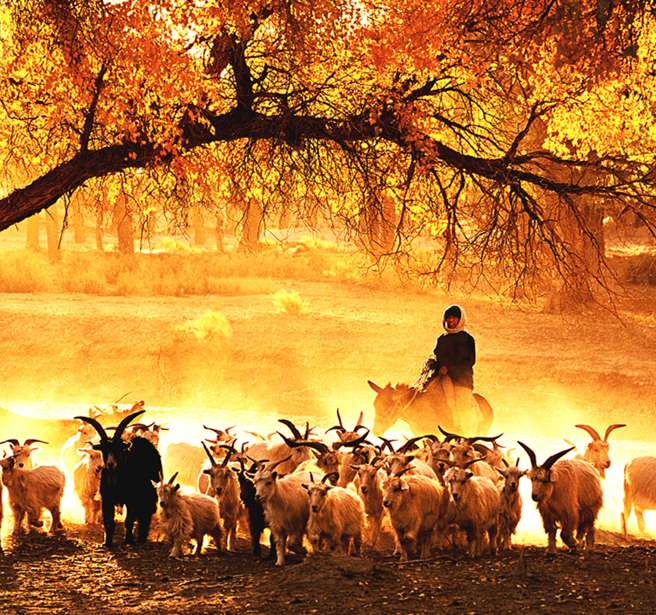 化的植物,大多是野生,被人們譽(yù)為“沙漠勇士”。胡楊林是一種神奇的群體,它們耐寒、耐熱、耐堿、耐澇、耐干旱。胡楊生長期漫長,由于風(fēng)沙和干旱的影響,很多胡楊樹造型奇特、詭異,是一種神奇的自然景觀和獨(dú)特的人文景觀,堪稱大漠中的一顆綠色明珠,所以胡楊樹有“活三千年不死,死三千年不倒,倒三千年不朽”之稱。版權(quán)所有山東聊城聊之旅國際旅行社有限公司,轉(zhuǎn)載必究!每年9、10月,當(dāng)?shù)谝粓銮锼?,大片的胡楊林由綠變黃,一眼望去,陽光下金色的樹葉趁著湛藍(lán)的天空于風(fēng)中婆娑起舞,那種強(qiáng)烈的反差,鮮明的影調(diào),亮麗的色彩,足以令任何語言文字顯得蒼白無力。胡楊是中亞地區(qū)唯一適合生長的喬木,它是大自然漫長進(jìn)化過程中幸存下來的寶貴物種。它嫵媚的風(fēng)姿、倔強(qiáng)的性格、多舛的命運(yùn)激發(fā)人類太多的詩情與哲思。古往今來,胡楊已經(jīng)成為一種精神而被人們所膜拜。