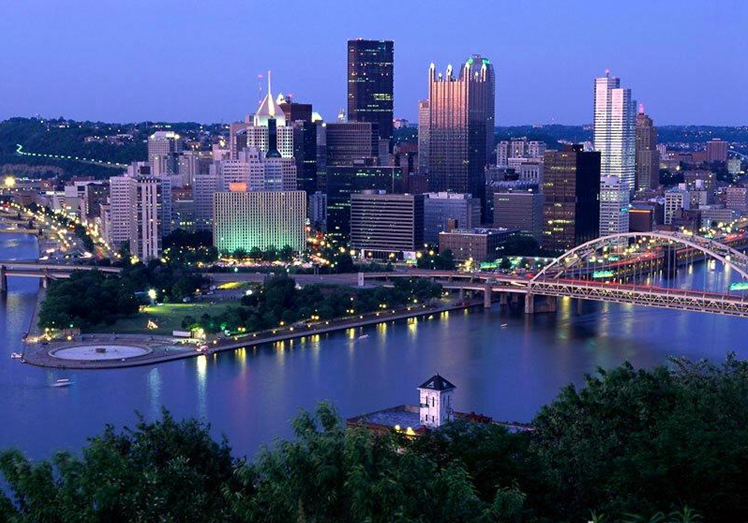 匹茲堡位于美國東海岸的賓夕法尼亞州,坐落在阿勒格尼河、莫農(nóng)加希拉河與俄亥俄河的交匯處。開車往東與紐約距離6小時,往東南到首都華盛頓特區(qū)3小時,往東到費(fèi)城5小時,往西到克利夫蘭1小時,往北到伊利湖2小時,往東北到尼亞加拉大瀑布5小時,可以說是美國東海岸連接中西部的重要地點(diǎn)。