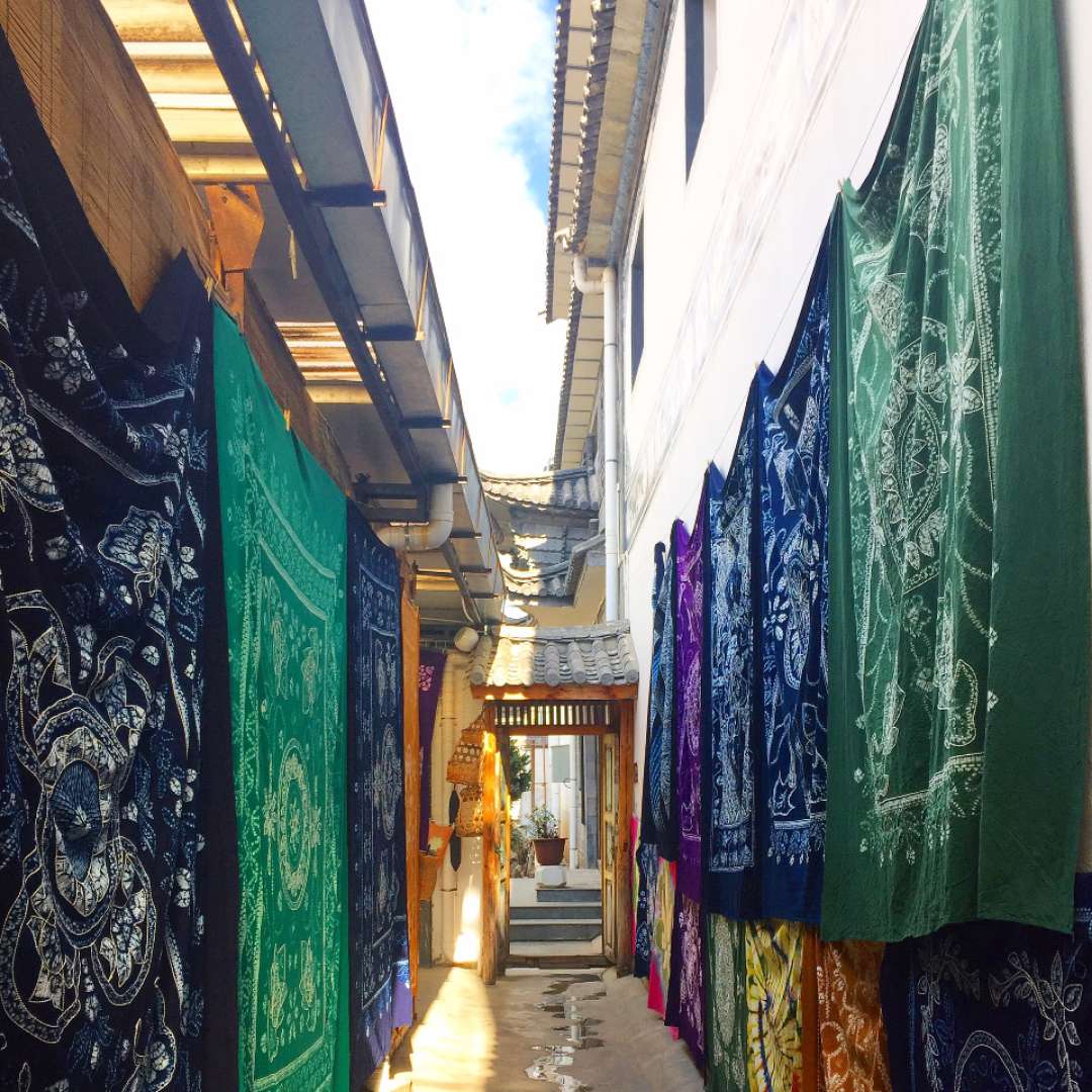 在周城,你還可以看到豐富的民族扎染制品。扎染是周城白族人民明末清初以來的民間傳統(tǒng)工藝,扎染工藝品集文化、藝術(shù)為一體。扎染布由手工針縫線扎,反復(fù)冷染浸制而成,顯色青里帶翠,凝重素雅,精工制作,圖案清新,色彩絢麗,遠(yuǎn)銷海內(nèi)外。用扎染布制作的工藝品既充滿濃濃的民族風(fēng)味,也很具現(xiàn)代韻味。