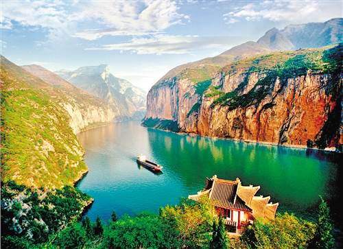 瞿塘峽雖然僅八公里長,卻是最令人屏息的一段江峽。兩岸如削,巖壁高聳,大江在懸崖絕壁中洶涌奔流,自古就有“險莫若劍閣,雄莫若夔”之譽。瞿塘峽是三峽中最短的一個峽,西起重慶奉節縣的白帝城,東到巫山縣的大溪鎮,全長雖然只有8公里,但卻有“西控巴渝收萬壑,東連荊楚壓群山”的雄偉氣勢。在三段峽谷中,它最短,最狹,最險,氣勢和景色也最為雄奇壯觀。其“雄”首先是山勢之雄。游人進入峽中,但見兩岸險峰上懸下削,如斧劈刀削而成。山似拔地來,峰若刺天去。峽中主要山峰,有的高達1500米。瞿塘峽中河道狹窄,河寬不過百余米。最窄處僅幾十米,這使兩岸峭壁相逼甚近,更增幾分雄氣。其中峽之西端的夔門尤為雄奇。它兩岸若門,呈欲合未合之狀,堪稱天下雄關。瞿塘之雄還在于水勢之雄。古人詠瞿塘:“鎖全川之水,扼巴蜀咽喉”。瞿塘峽雖然較短,但峽小景不少。我們將上溯逐一游覽。