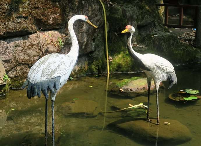 在麓山寺后,古樹環抱,有泉從石罅中溢出,冬夏不涸,清洌甘甜,清澈透明。白鶴泉有“麓山第一芳潤"之稱。相傳古時候曾有一對仙鶴常飛至此因而取名白鶴泉,有趣的是以泉水煮沸沏茶,蒸騰的熱氣盤旋干杯口,酷似白鶴。曾有寺僧砌石為井如鶴形,刻“白鶴泉"三字于崖上,并建有一石碑。清光緒三年(公元1877年),糧道夏獻云在泉上建亭,抗戰時被毀,解放后又新建一亭,碧瓦朱欄,頗見風雅。現泉側建有茶室,用清冽的白鶴泉水沏茶,供游客品嘗。