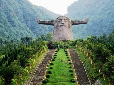 神農祭壇的主體建筑是神農巨型牛首人身雕像,此像高21米,寬35米,相加為56米,以示中華56個民族緊密團結,欣欣向榮。雕像立于蒼翠群山之間,以大地為身驅,雙目微閉,洞察秋毫,似在思索宇宙。祭祀區內,踩在腳下的是代表天和地的圓形和方形圖案,在代表地的方形圖案中,五色石分別為五行學說中的金、木、水、火、土。近處,高10米的圖騰柱分別立于祭壇的左右兩邊,柱上的大小牛首以示神農氏為牛首人身,子孫后代繁衍之意。圖騰柱的前方有兩幅大型浮雕,展現了神農氏一生的豐功偉績。兩幅浮雕之間設有九鼎八簋(古時人們用以煮盛的物品,現為中華民族的最高祭祀禮器)和鐘鼓樓以供炎黃子孫在此祭拜先祖,尋求庇佑。登高343級臺階,便來到了雕像前的瞻仰臺(古時為天子祭禮,瞻仰的地方)。