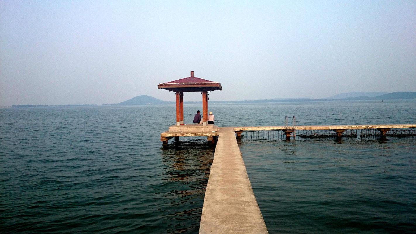 建于湖心小島上,由十里長堤與陸地相連,原名“中正亭”,1931年為紀念蔣介石五十壽辰而建,后改稱“湖光閣”。閣為三層六面,飛檐綠瓦,登閣四顧,游船輕移,景象萬千。霧日,水天一色,湖光高閣,似蓬萊仙境,無不令人向往。