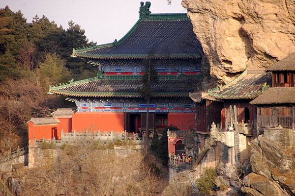 元至元二十二年至泰定五年(1285~1328年)在山中大建宮觀,南巖宮是其一。現(xiàn)僅存宮中石殿,石雕仿木結(jié)構(gòu),殿內(nèi)有“天子臥龍床”組雕和“三清”塑像,四面環(huán)立500鐵鑄靈官塑像,均生動(dòng)逼真。殿外遠(yuǎn)近有疊字峰、金鼎峰、滴水崖、崇福崖、白龍?zhí)兜葎倬埃邢缮綐情w之妙。版權(quán)所有山東聊城聊之旅國(guó)際旅行社有限公司,轉(zhuǎn)載必究!殿外崖前有雕龍石柱,橫出欄外2.9米,寬僅30多厘米,上雕盤龍,龍頭置一小香爐,俗稱龍頭香。石殿右下方崛起一峰,上建梳妝臺(tái)、飛身巖、相傳為“真武”舍身成仙之所。