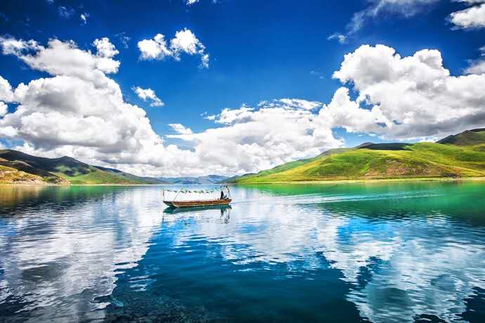羊卓雍措被譽為世界上最美麗的水。羊卓雍措,“羊”:上面;“卓”