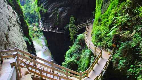 地質奇觀——武隆地縫。武隆地縫風景區,位于武隆區仙女山鎮境內,距縣城15公里。它是幾千萬年前造山運動而形成,屬典型的喀斯特地貌景觀,峽谷長5公里,谷深200-500米,其規模宏大,氣勢磅礴,峽谷具有雄、險、峻、秀等特點。景區內的高山、峻嶺、峽谷、流水共同構成一幅完美的