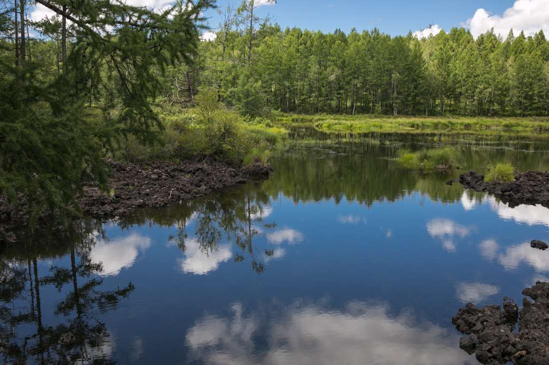 山玄武巖地貌,地質構造、土壤、植被、生物區(qū),均保持原始狀態(tài),生物多樣,再現(xiàn)了低等植物到高等植物的演替全過程,具有較高的科研和保護價值。石塘林長20公里、寬10公里,是由火山噴發(fā)后巖漿流淌凝成。裸露的火山石。形成了大小不等、凹凸不平的地貌,怪石嶙峋,姿態(tài)各異。塘內寸土無積,但落葉松長得高大挺拔,高山柏長達數(shù)丈;偃松(爬地松)翠綠欲滴;金星梅、銀星梅長開不謝。石塘林內,石林相依,花草相融,清流時隱時現(xiàn),令人嘆為觀止。經過千年風化和流水沖刷,形成了石塘林獨具特色的自然地貌,猶如波濤洶涌的熔巖海洋,有翻花石、熔巖洞、熔巖丘、噴氣錐、熔巖龜背、地下暗河等神奇的景觀。興安落葉松枝繁葉茂,高山柏遍地延伸,偃松四季常青,金星梅、銀星梅一片金黃,一片銀白,處處景色盎然。