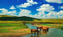 五里泉東面是雄偉的大興安嶺主脈,其他三面是長滿鮮花芳草的濕地。清晨,常有一條飛升的白霧,方圓三里纏繞著五里泉,像為五里泉披了一塊朦朧的面紗。每天清晨,不少