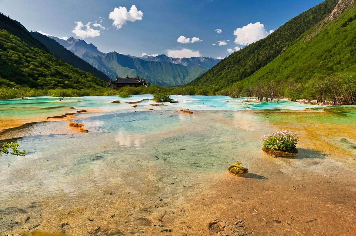 黃龍寺,用以奉祀黃龍。黃龍溝以它“奇、絕、秀、幽”的自然景觀而蜚聲中外,它酷似中國人心目中“龍”的形象,藏民稱之為“東日·瑟爾磋”,意為東方的海螺山(指雪寶頂)、金色的海子(指黃龍溝),并沿襲著一年一度盛況煊赫、波及西北各省區(qū)各族民眾參加的轉(zhuǎn)山廟會。黃龍溝連綿分布鈣化段長達(dá)3600米,最長鈣化灘長1300米,最寬170米;彩池數(shù)多達(dá)3400余個;邊石壩最高達(dá)7.2米。