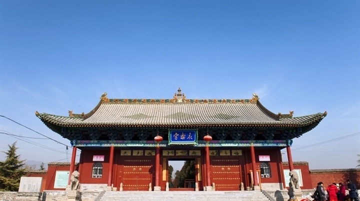 永樂宮,因故址在永樂鎮(zhèn)而命名,又名大純陽萬壽宮。永樂宮屬全國重點文物保護單位,原址位于山西省芮城縣永樂鎮(zhèn)招賢村,現(xiàn)址位于芮城縣城北3公里的龍泉村東側。永樂宮始建于元代,施工期前后共110多年。宮殿內(nèi)部的墻壁上布滿永樂宮壁畫。