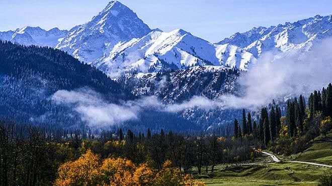 喀班巴依峰海拔4257米,是以哈薩克著名民族英雄之名命名。提克喀拉尕依,哈薩克語,意為挺拔壁立的云杉樹之意,其雪嶺云杉攀坡而生,隨山巒起伏,猶如一道沿山而筑的長城,延綿不斷,風吹林海,松濤聲嘯,實為難得之美景。