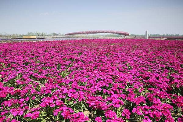 公園內的“衲田花海”,總面積2220畝,由612塊花田 “縫補”拼接而成,融合了北方旱梯田的雄渾和南方水梯田的俊秀,與僧人袈裟異曲同工,又兼具納祥聚福之意,樸質卻熠熠生輝。這里栽植著50多種花卉,自南向北形成黃、紅、紫三大色區,呈現出海納百川之態、兼容并蓄之美。站在全長2.3公里的彩虹橋俯瞰花海,聽花開花落,嗅濃郁芬芳,感受濃濃的原鄉情懷。