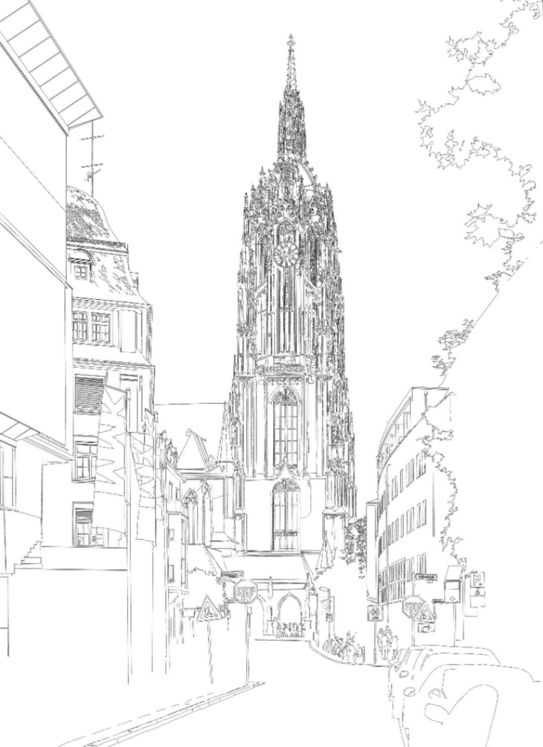 法蘭克福大教堂(Frankfurt Cathedral)位于位于羅馬廣場以東,是一棟哥德式建筑。它是13至15世紀的哥特式建物,又稱為皇帝大教堂(Kaiserdom)及加冕教堂,德國皇帝曾在此加冕。從14世紀迄今,已有600年的歷史,雖幾經戰火,仍能幸免于難。在1562-1792年間神圣羅馬帝國(Holy Roman Empire)時期共有10位德國皇帝的加冕典禮在此舉行,教堂寶庫內陳列有大主教們在加冕典禮時所穿的華麗衣袍。有332級臺階直通塔頂,塔頂可俯瞰整個城市的全景。主樓是壯麗的十五世紀哥特式塔樓,高95米。教堂南面的投票禮堂是曾經選舉皇帝的地方。奇怪的是大教堂里從來就沒有大主教。