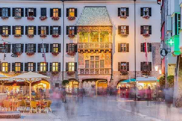 在城中心有一棟修建于1500年的豪華二層建筑,寬16米,僅屋頂就高達3.7米,且由2600塊鍍金銅瓦鑲嵌而成,這便是鼎鼎大名的金頂屋。