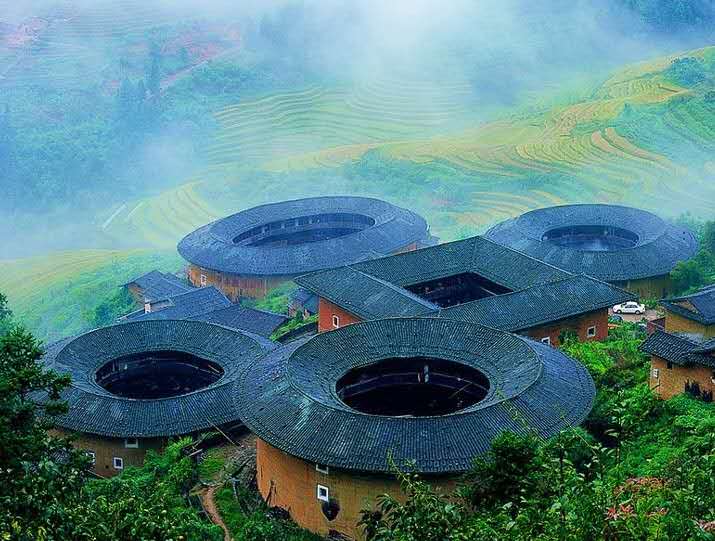 福建土樓產(chǎn)生于宋朝時(shí)代,明、清朝時(shí)期逐漸成熟,并一直延續(xù)至今。福建土樓是世界上獨(dú)一無二的山區(qū)大型夯土民居建筑,依山就勢(shì),布局合理,吸收了中國(guó)傳統(tǒng)建筑規(guī)劃的“風(fēng)水”理念,適應(yīng)聚族而居的生活和防御要求,巧妙地利用了山間狹小的平地和當(dāng)?shù)氐纳痢⒛静摹ⅨZ卵石等建筑材料,是一種自成體系,具有節(jié)約、堅(jiān)固、防御性強(qiáng)的特點(diǎn),又極富美感的生土高層建筑模式。福建土樓的建筑材料甚為奇特,由粘土、糯米、紅糖、竹片、水組成,建成的土樓冬暖夏涼,具有很強(qiáng)的抗臺(tái)風(fēng)、抗地震能力。曾為湖南衛(wèi)視《爸爸去哪兒第三季》第三站的拍攝地。2016年8月3日,國(guó)家旅游局召開新聞發(fā)布會(huì),嚴(yán)重警告南靖土樓景區(qū)。