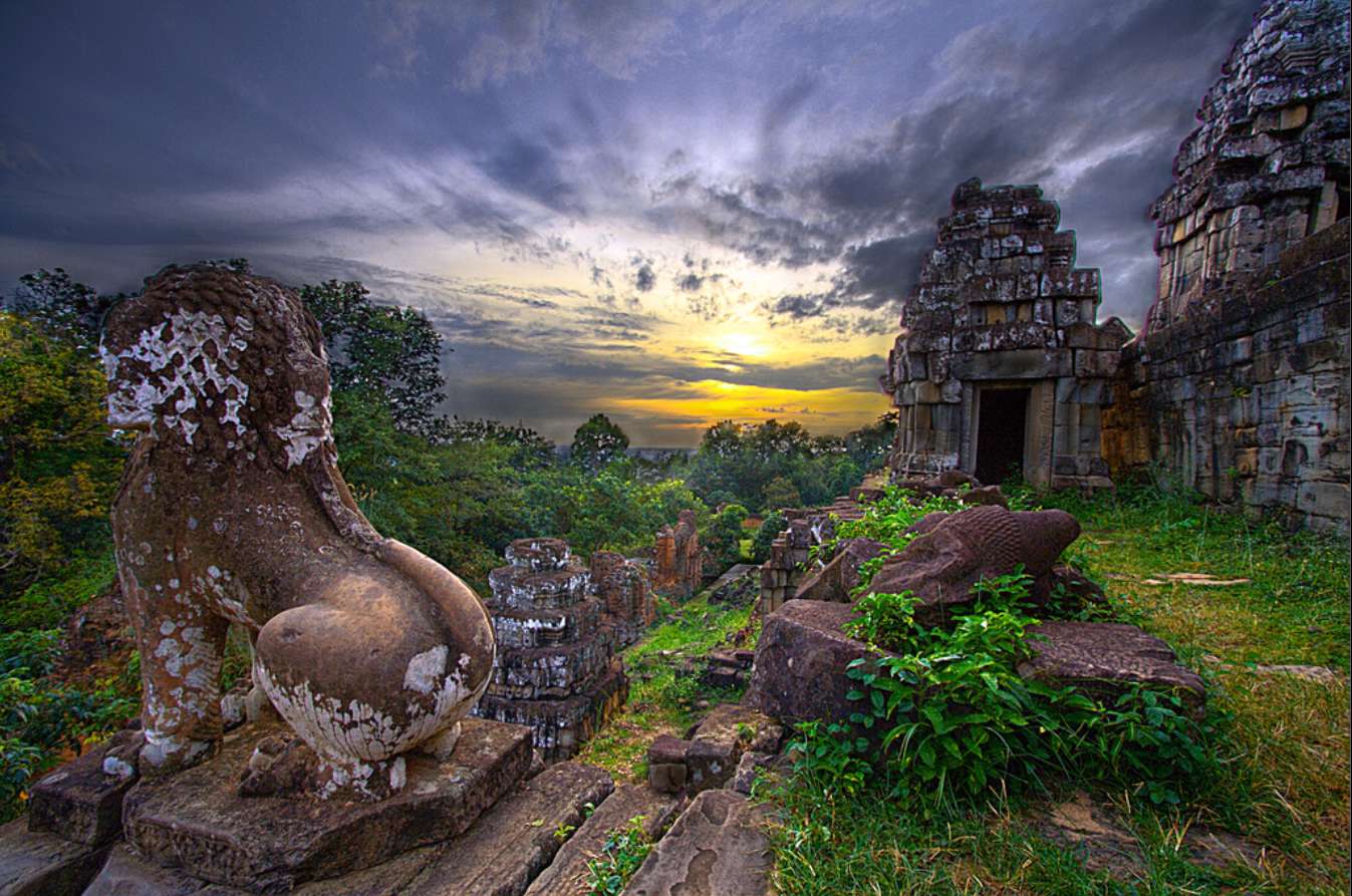 建于耶輸跋摩(889~910年在位)統(tǒng)治時期,這是吳哥幾座代表須彌山的寺廟(包括吳哥窟)中的第一座。盡管這兒仍然是拍攝遠(yuǎn)處落日余輝中的吳哥窟的絕對山頂位置,但令人傷心的是,如今的巴肯山神廟已經(jīng)熙來攘往,不再是看日落的最佳地點(diǎn)了。看日落較為安靜的地點(diǎn)是科榮寺(PhnomKrom)的寺廟群,從那兒還可以俯瞰洞里薩湖和比粒寺(PreRup)。