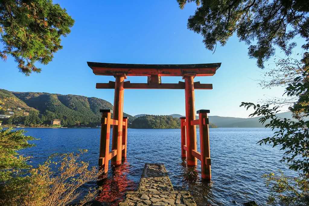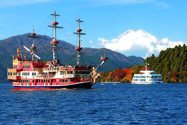 箱根的蘆湖為火山湖,海拔724米,方圓20千米,面積7平方千米,湖最深處達45米, 湖水清澈湛藍。晴天時可從這里看到終年積雪的富士山,大涌谷附近設(shè)有自然科學(xué)館,是江戶時代幕府設(shè)置的關(guān)卡,在關(guān)所的定番所內(nèi)陳列著當(dāng)時行人攜帶的“身份證”、捕吏使用的短槍、長柄大刀等1000多件文物以及栩栩如生的關(guān)所檢查人員的塑像,現(xiàn)為重點保護文物。 箱根的溫泉久負盛名,著名的有“箱根七湯”(指最著名的7個溫泉),是療養(yǎng)的好地方。坐上登山電車、電纜車和空中吊車登山,可欣賞逶迤的溪谷、富士山的雄姿和蘆湖的旖旎風(fēng)貌。