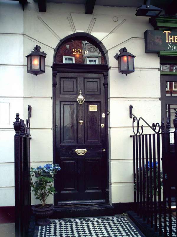說起貝克街、福爾摩斯他們所居住的221b是很有名的、但當時貝克街是從東側從南到北有1號~42號、西側由北到南是44號~85號。并不存在221號。也就是說221b只是作者制造出來的虛幻的地方。順便說一下、221b的“b”并不是英文字母“b”,而是法語中的bis(~2)的意思、221地址是表示有2戶人家的記號。當前的貝克街221b是金融公司(ABBY NATIONAL)、鄰接的場所建有夏洛克·福爾摩斯的住所。