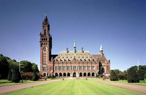 Cour internationale de Justice (CIJ) 國(guó)際法院是聯(lián)合國(guó)的主要司法機(jī)構(gòu),院址在荷蘭海牙的和平宮,亦稱“海牙國(guó)際法庭”。它依據(jù)《聯(lián)合國(guó)憲章》和所附的《國(guó)際法院規(guī)約》于1946年4月成立。