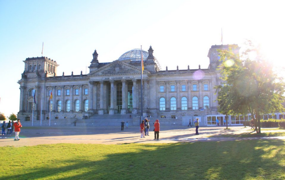 柏林的德國國會大廈建于1884年,由德國建筑師保羅·瓦洛特設計,采用古典主義風格,最初為德意志帝國的議會。1918年11月9日,議員菲利普·沙伊德曼通過國會大廈的窗口宣告共和國的成立。1933年2月27日大廈失火,部分建筑被毀,失火原因不明。“國會縱火案”成為納粹統治者迫害政界反對派人士的借口。二戰中,大廈遭到嚴重毀壞。1945年4月30日,蘇聯紅軍把紅旗插上國會大廈的屋頂,宣布了反法西斯戰爭的勝利。1961至1971年間,大廈按保羅·鮑姆加藤的設計方案重建。重建的國會大廈對建筑進行了簡化,省去了1945年被炸掉的大廈圓頂部分。這座曾位于柏林墻邊界上的大廈內曾辦有“德國歷史問答”展覽。該展覽遷至德國大教堂中。兩德統一之后,德國聯邦議會決定重新遷入國會大廈。1990年10月3日德國人民在國會大廈前慶祝了國家的重新統一,同年12月20日,第一屆全德聯邦議會確定柏林為統一德國的首都,國會大廈則被定為德國聯邦議院所在地。1994年至1999年,諾曼·弗斯特爵士以大廈最初的規模為藍本設計,對國會大廈進行了重新修建,建成為一座現代化的議會辦公大樓,新建的穹形圓頂供人游覽。1994年修復工程開始之前,國會大廈曾成為全歐洲最引人注目的藝術品。德國聯邦議院于1998年底遷入國會大廈,1999年在此選舉下一任聯邦總統。現曾讓人爭議一時的穹形圓頂已成為柏林城的新標志。