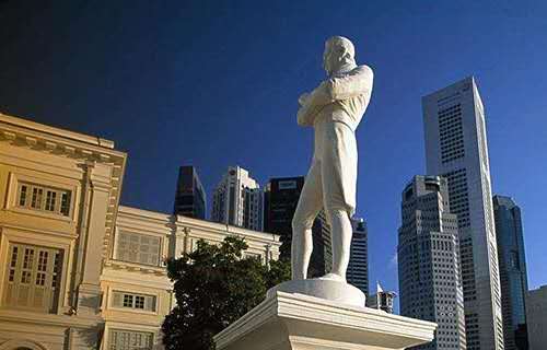 萊佛士爵士銅像位于新加坡河畔的泊船北碼頭,為紀念萊佛士爵士這位新加坡的開埠者而立。