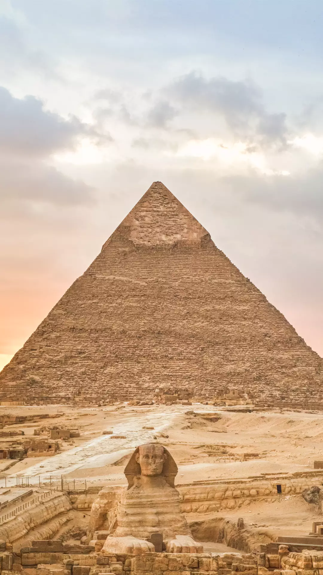 金字塔在埃及和美洲等地均有分布,古埃及的上埃及、中埃及和下埃及,今蘇丹和埃及境內。現在的尼羅河下游,散布著約80座金字塔遺跡。 大小不一,其中最高大的是胡夫金字塔,高146.5米,底長230米,共用230萬塊平均每塊2.5噸的石塊砌成,占地52000平方公尺。石塊之間沒有任何黏著物,靠石塊的相互疊壓和咬合壘成。國王哈佛拉的金字塔前,還矗立著一座象征國王權力與尊嚴的獅身人面像。埃及金字塔是古埃及的帝王(法老)陵墓。世界七大奇跡之一。數量眾多,分布廣泛。開羅西南尼羅河西古城孟菲斯一帶的金字塔是占有集中的一部分。