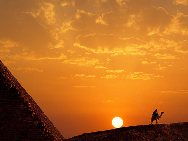 約從公元前3500年開始,尼羅河兩岸陸續出現幾十個奴隸制小國。約公元前3100年,初步統一的古代埃及國家建立起來。古埃及國王也稱法老,是古埃及最大的奴隸主,擁有至高無上的權力。他們被看做是神的化身。他們為自己修建了巨大的陵墓金字塔,金字塔就成了法老權力的象征。因為這些巨大的陵墓外形形似漢字的“金”字,因此我們將其稱之為“金字塔”。在哈夫拉金字塔前,還有一尊獅身人面像守衛著法老們的陵墓。