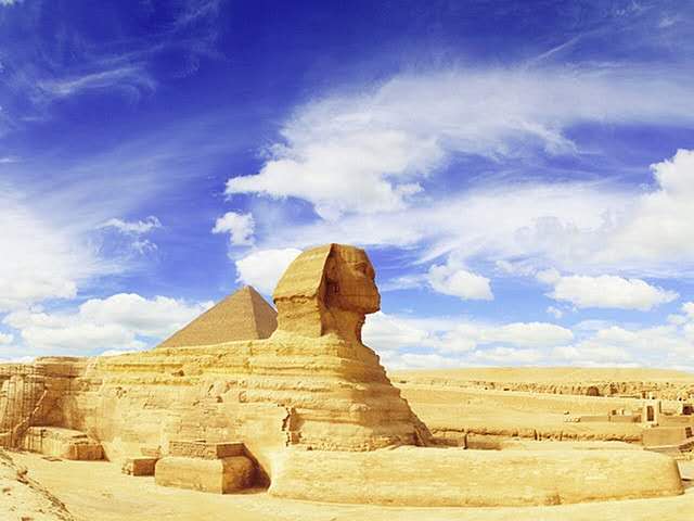如果不說(shuō)金字塔是世界奇觀,就不能說(shuō)是到過(guò)了埃及。從開(kāi)羅西行數(shù)公里,來(lái)到吉薩村前。在便屹立眼胡夫金字塔東側(cè),便是獅身人面像,它以誘人的魔力,吸引了各地的游客。“怪物”--斯芬克斯獅身人面像的頭像,真的是以胡夫作模特兒的嗎?不過(guò)比較可惜的是獅身人面像的鼻子被打破了,有損美觀及協(xié)調(diào)性。