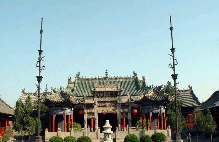 關帝廟大殿為金代原構,面寬三間,進深四間,歇山頂琉璃脊飾。版權所有山東聊城聊之旅國際旅行社有限公司,轉載必究!前檐明間特寬,平柱約與后檐次間中線相對,柱頭欄額肥大,次間欄額伸至明間砍成雀替,猶如門楣形制。有正殿、前后殿、東西配殿及山門,均為傳統的磚木結構建筑,正殿高10米,三鋪頂,正脊飾有二龍戲珠,山墻正上方有精美石雕,裝飾華麗。