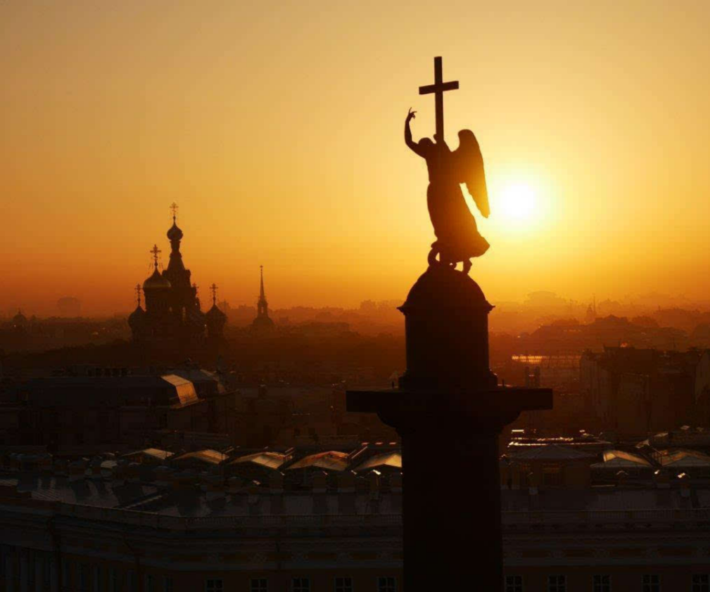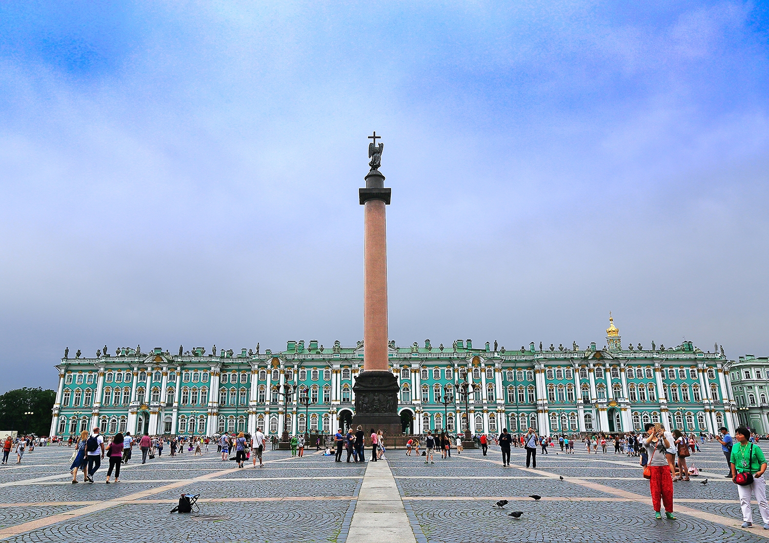 亞歷山大紀念柱,矗立于圣彼得堡冬宮廣場中央,是1834年沙皇亞歷山大為了紀念1812年俄法戰爭勝利而修建的。大理石柱青銅底座的浮雕代表著榮譽,光輝和勝利。