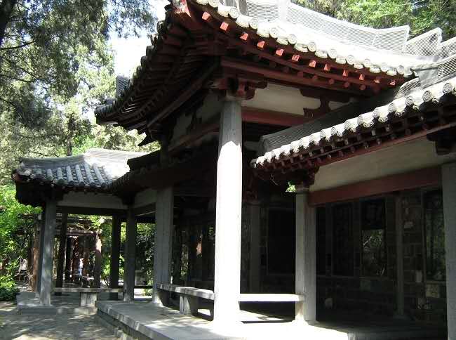 由墓道向左、下至峰腰平緩處,即是古雅的九曲回廊,廊壁盡嵌現代詩人墨客吟詠的詩作以及白居易