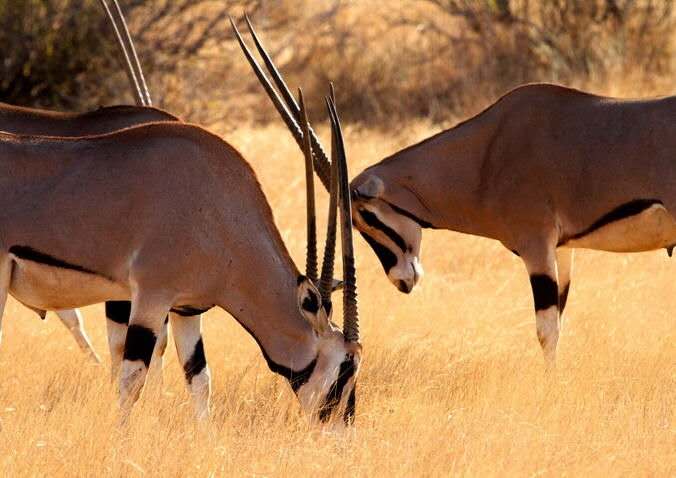 從肯尼亞雪山上流經到地勢低的桑布魯的伊瓦索尼羅河(EwasoNyiro)是桑布魯的生命之源,當地人稱之為桑布魯之水(WaterSamburu),因為水的顏色呈棕色,又稱之為棕色的水(Brown;Water),也正是因為這條寶貴的支流,給干旱的桑布魯增色不少,在這里,隨處可見成群的大象在河邊嬉戲,鱷魚在泥水里懶洋洋的沐浴日光浴,成群的河馬匍匐在河中,當然這些動物在肯尼亞其他地區也可以看到,但是桑布魯所特有的五大動物(BIGFIVE)是極其罕見的,葛式細紋斑馬(Brevyzebra),東非劍羚(Beisaoryx),藍腿索馬里鴕鳥(Somaliostrich),網狀長頸鹿(Reticulatedgiraffe),長頸羚(Gerenuk)。這里多達380余種的鳥類同樣吸引著鳥類學家的眼球,象犀鳥,非洲食魚鷹等。
