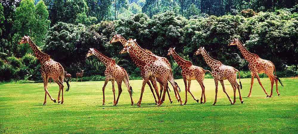 長隆野生動物世界生活著以“十大世界珍稀動物國寶”為代表的500多種珍稀動物,包括中國的大熊貓、澳大利亞的考拉、非洲黑犀牛、泰國亞洲象、馬來西亞馬來貘、塞拉利昂倭河馬等等……這些世界珍奇動物在這個動物天堂里安居并開枝散葉,使長隆野生動物世界成為世界最為重要的野生動物繁育保護基地之一?!¢L隆野生動物世界大多數動物都已形成龐大的種群,斑馬、熊貓、角馬、長頸鹿、梅花鹿、亞洲黑熊、獼猴、亞洲象、非洲獅、老虎等動物都形成了數十只乃至數百只的大種群,并仍在不斷發展壯大,為世界動物園所罕見。