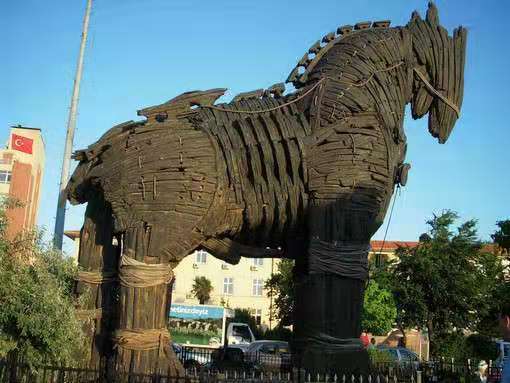 公元前9世紀(jì)古希臘詩人荷馬的史詩《伊利亞特》敘述的"特洛伊木馬計(jì)"就發(fā)生在這里。特洛伊王子帕里斯來到希臘斯巴達(dá)王麥尼勞斯宮作客,受到了麥尼勞斯的盛情款待,但是,帕里斯卻拐起了麥尼勞斯的妻子。麥尼勞斯和他的兄弟決定討伐特洛伊,由于特洛伊城池牢固,易守難攻,攻戰(zhàn)10年未能如愿。最后英雄奧德賽獻(xiàn)計(jì),讓邁錫尼士兵燒毀營帳,登上戰(zhàn)船離開,造成撤退回國的假象,并故意在城下留下一具巨大的木馬,特洛伊人把木馬作為戰(zhàn)勝品拖進(jìn)城內(nèi),當(dāng)晚正當(dāng)特洛伊人酣歌暢飲歡慶勝利的時(shí)候,藏在木馬中的邁錫尼士兵悄悄溜出,打開城門,放進(jìn)早已埋伏在城外的希臘軍隊(duì),結(jié)果一夜之間特洛伊化為廢墟。荷馬史詩敘述的這段事跡,成為西方國家文學(xué)藝術(shù)中傳誦不絕的名篇。