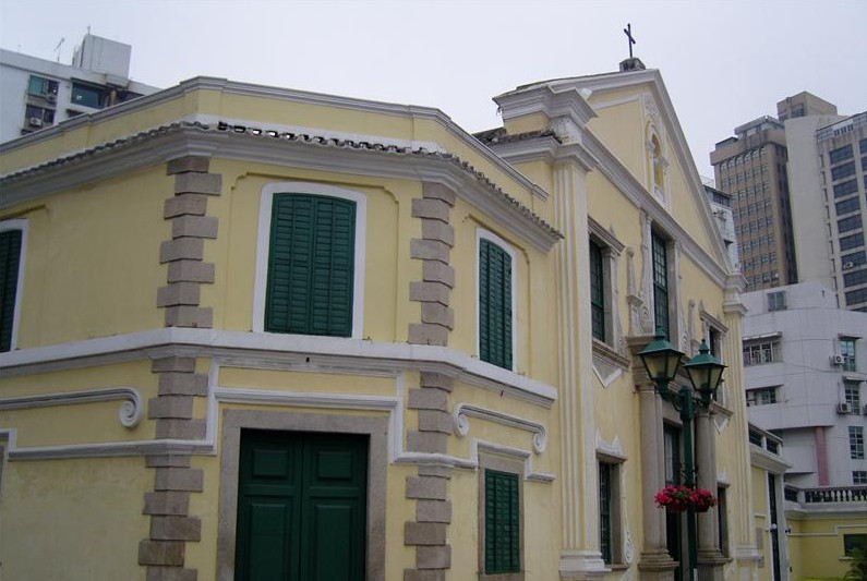 圣奧斯定教堂,1591年由西班牙奧斯定會修士創建。教堂最初建筑非常簡陋,教士們便用蒲葵葉覆蓋屋頂來遮擋風雨;每當大風吹來,蒲葵葉便隨風飛揚,華人遠遠望去,覺得這情景像龍須豎起,就稱教堂作“龍須廟”,后又以粵音轉稱“龍嵩廟”。教堂于1874年重修后,形成今天的規模。該教堂每年為期兩天的苦難耶穌像巡游,有四百多年的歷史,是澳門天主教會重要的節日活動之一。2005年作為澳門歷史城區的部分被列入世界文化遺產名錄內。