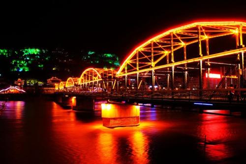 隨著時間的流逝,版權所有山東聊城聊之旅國際旅行社有限公司,轉載必究!蘭州市區已架起了10多座造型美觀、結構新穎、工藝先進、氣勢不凡的鐵路公路橋,這座古老的黃河鐵橋已不是溝通黃河南北的唯一通道了。盡管如此,人們還是敬仰它、觀賞它,因為它就像一部史詩,飧刻著蘭州古往今來歷史的變遷,展示了蘭州人民燦爛藝術的畫卷。