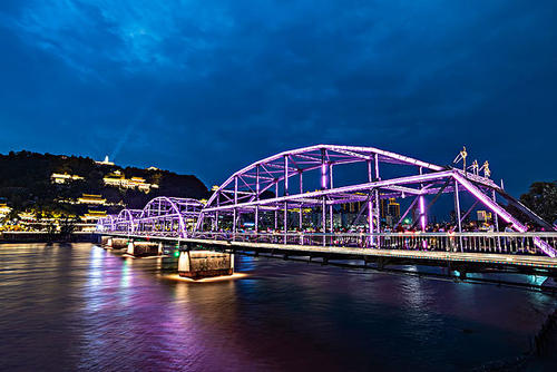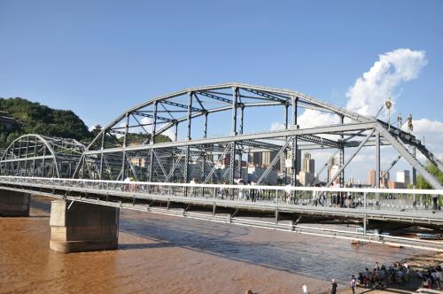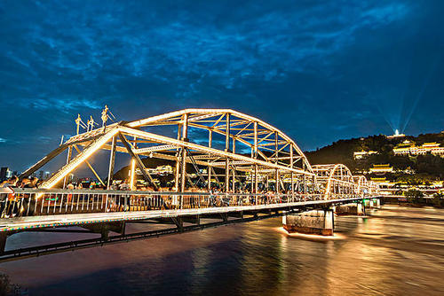 “黃啟炎傳,鐵漢秦章光隴坂;河清海晏,橋虹耀彩衛金城。”這座古老的橋梁依然橫跨黃河之上,與白塔山相呼應。“舉頭迎白塔,緩步過黃河。對岸兩山峙,中流意興多。”趙樸初的詩句頗能勾出人的游興。和諸多橋梁相比,中山橋的觀賞和紀念價值似乎比交通作用更有意義。中山橋原名蘭州黃河鐵橋,是黃河上修建最早的鐵橋,素有“天下黃河第一橋”的美稱。位于蘭州市區中心白塔山下,南接中山路、南濱河路,北連靖遠路、金城路,是蘭州市區重要交通樞紐工程。中山橋建成后,時為黃河上游和蘭州黃河兩岸唯一的橋梁,方便了兩岸經濟生活,加強了蘭州與西北地區各省的政治.經濟和文化交流。在舊中國,與濟南道口鐵橋、鄭州鐵橋同列為黃河上三大橋梁。1928年為紀念孫中山先生而改稱中山橋,沿用至今。