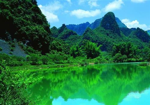 黑水河在大新縣境內長45.5公里,屬左江支流。是由斷層控制走向的一條峽谷性河流,兩岸峰叢疊嶂,山體高差300米左右。黑水河以峰叢體量之雄、峽谷之險、河彎之幽、洞穴之奧為特色。主要有三個景點。那岸奇景:長約9公里,屬巖溶峰林谷地地貌。兩岸群山如削,奇石環列,水清景異。版權所有山東聊城聊之旅國際旅行社有限公司,轉載必究!月亮山、刀刃峰、仙人指、羅漢峰、老人山等奇峰怪石層出不窮。那岸電站飛水成瀑,是典型的峽谷水庫類型,很是壯觀。黑水河田園風光:長約20公里。
