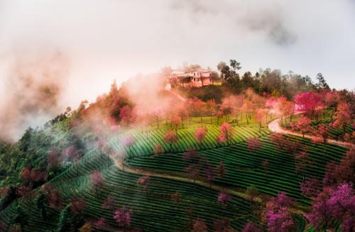 南澗縣無(wú)量山櫻花谷,在無(wú)量山國(guó)家級(jí)自然保護(hù)區(qū)周邊,與靈寶山國(guó)家森林公園相鄰,距離縣城51公里。北緯24°45' 50" 東經(jīng) 100°30' 32" ,海拔2175米。每年11月底至12月,間植在茶園中的冬櫻花競(jìng)相開(kāi)放,構(gòu)成一幅無(wú)量山櫻花谷人間仙境。櫻花谷面積約2000畝,成三片分布。櫻花谷免費(fèi)為游客開(kāi)放,不收費(fèi),景區(qū)配備有觀景臺(tái),衛(wèi)生間、餐飲、住宿等設(shè)施,是集觀光、旅游、攝影為一體的旅游景區(qū),是攝影愛(ài)好者的天堂。
