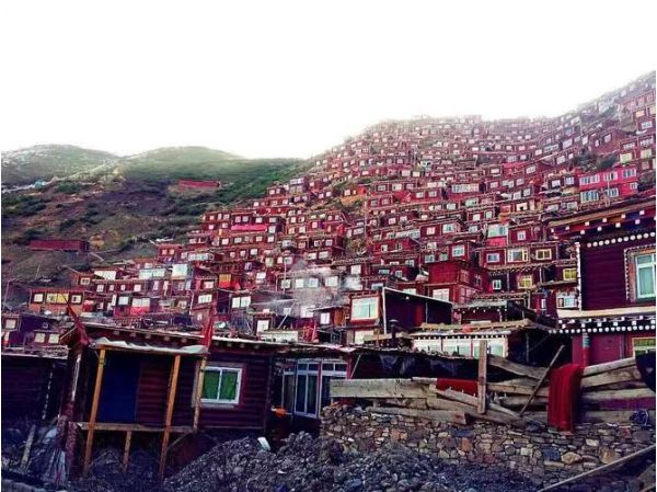 修行處)。上世紀80年代,寧瑪派僧人晉美彭措擴建該修行點,創建小規模講經院和禪修院各一座,時有32名學員,晉美彭措任堪布。1985年5月,形成喇榮學經點,至1993年,學經點學員增加至2千多人,經師54人。1997年,成立喇榮寺五明佛學院。上世紀90年代末,規模逐漸擴大、人員數量急劇增長,地質、消防、衛生、治安等隱患很大。
