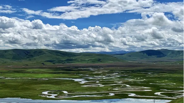 郭莽濕地位于甘肅省碌曲縣尕海鄉213國道旁,海潑3562米,是黃河最大支流洮河的發源地和水源涵養地,在黃河流域生態涵養和水源保護中具有重要意義。郭莽濕地是一個開放式免費景點,就在公路邊。草地上一條500多米長的木棧道通往觀景臺,站在觀景臺上,眼前彎曲的小河,傍水而居的藏族小村莊,風輕日朗,白云朵朵,綠草如茵經幡飄揚,好似一幅美麗的生態畫卷!