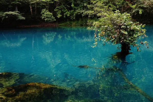 臥龍?zhí)段挥谂P龍河出水口,被稱為“小九寨”,水面平滑如鏡,水質(zhì)出奇的深邃。潭水由于深淺不同而呈現(xiàn)出不同的顏色,如深藍(lán)、湛藍(lán)、墨綠、碧綠等,變幻多端。潭邊怪石奇樹林立,古木森森,潭外水聲轟鳴,霧雨蒙蒙,四周高山緊鎖,水潭猶如地底深淵。