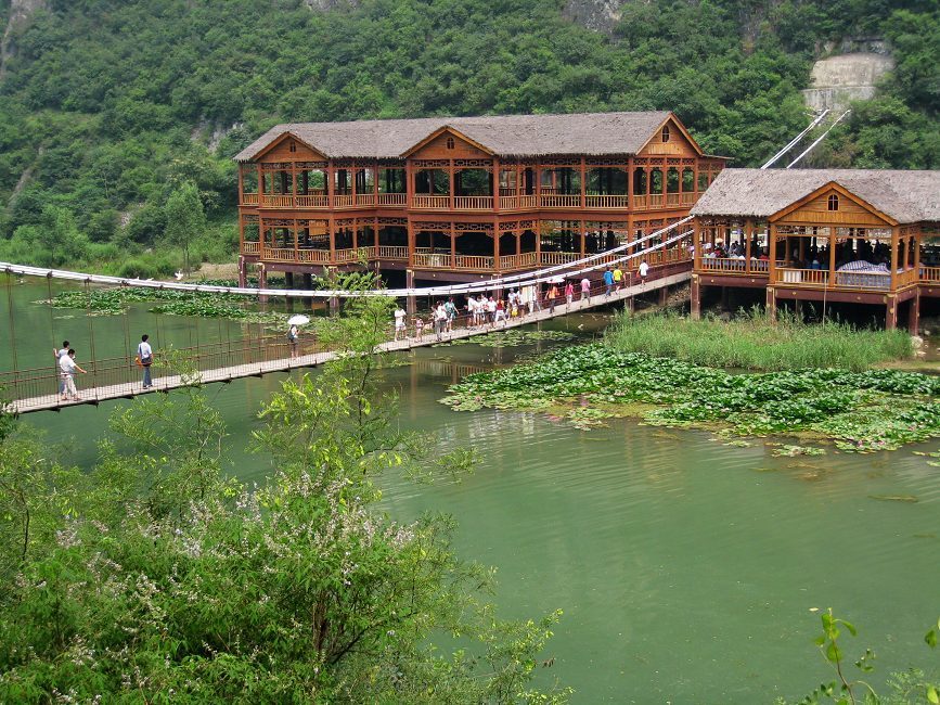 青天河之水天上來,這里三步一泉,五步一瀑,青山繞碧水,綠樹掩古寺,飛泉流瀑,如詩如畫。有世界獨一無二的天然長城及世界奇觀石雞下蛋;有中原獨一無二的高山峽谷濕地景色;有最大出水量每秒7立方米、洞徑2.18米的“華夏第一泉”三姑泉及由此泉水形成的長達7.5公 里的大泉湖。這里碧波蕩漾,嫵媚婉約,水隨山勢,百轉千回;野鴨隨水勢,掠過水面,水天一色;兩岸綠色掩映,獼猴嬉戲其中,湖內行船蕩舟,舟移景異,船在畫中走,人在畫中游,如游漓江,似進三峽,置身其中,您將從生活壓力中解放出來,得到最暢快最松弛的休閑。進入西峽,兩岸青峰翠嶺,水面一平如鏡,楊柳臨溪傍水,荊林神韻通幽,古樸小舟伴著暮歸的老牛和牧童,一片田園牧歌式的風光呈現在眼前。而游程中,產生于7000萬年前至今唯一身上有文字記載的世界罕見天然大佛、距今1500年的北魏摩崖石刻、北魏官道等人文景觀,會使你在這靜謐的環境中返樸歸真,去細細地體味和追溯歷史的腳步。