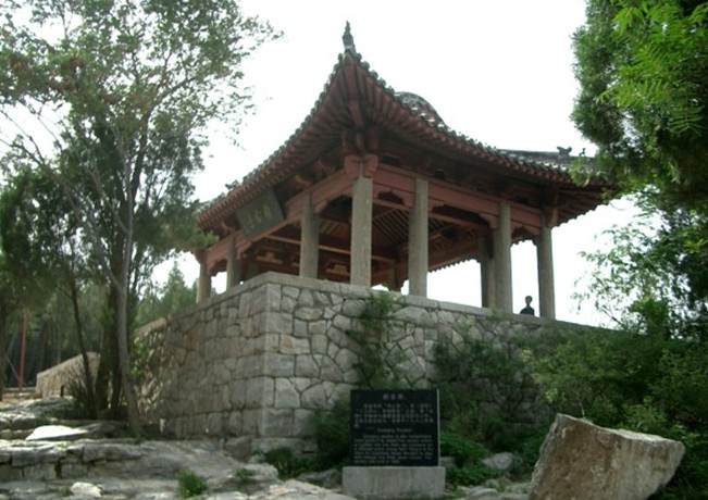 斷金亭 在梁山支脈狗頭山,西臨懸崖巨壑。是當年林沖為納晁蓋等七好漢入伙,火并白衣秀士王倫的地方。現已修復斷金亭,并在亭下修建