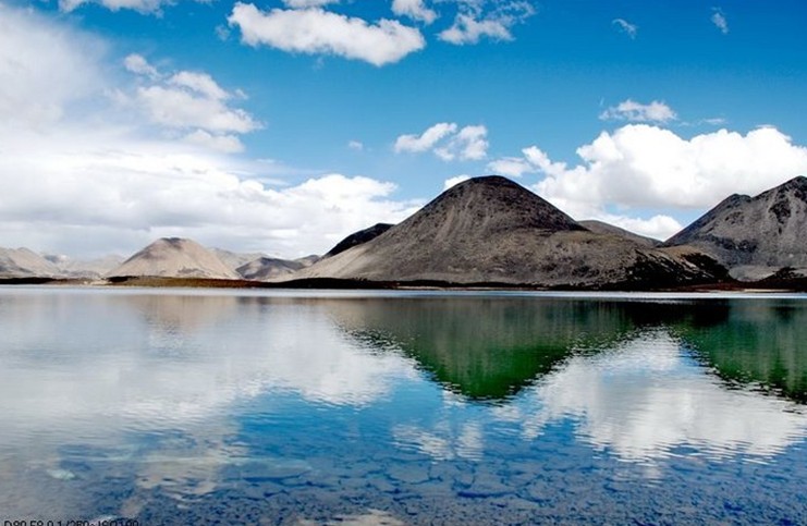 據藏文古籍《五部遺教》等藏文記錄,墨竹思金拉措神湖位于猶如聚寶盤里用金銀財寶向四周供奉曼陀羅。其間,藍天倒映在湖中。而墨竹思金龍王以雪域財主的身份把財寶撒在大地上,撒滿整個雪域山川,并用各種珍貴藥材及樹木、鮮花、野生動物將其點綴,。神湖后面形如龜王的山上有蓮花生大師修行的“仲巴”巖洞及許多歷史悠久的修禪靜地和生成之物。