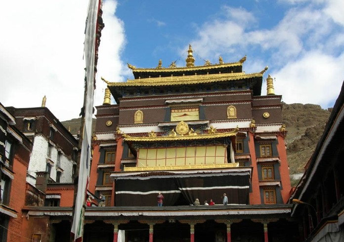 度母殿位于寺院經堂后面三座佛殿東側,三座佛殿中居中的是釋迦牟尼殿,西側是彌勒殿;釋迦殿內供5米多高的釋迦牟 尼鎏金銅像,據說像體內有釋迦舍利,還有宗咯巴的頭發以及根珠巴的經師西繞森格的頭蓋骨。度母殿藏語稱卓瑪康,供2米高的白度母銅像,兩旁還有泥塑的綠度母像。