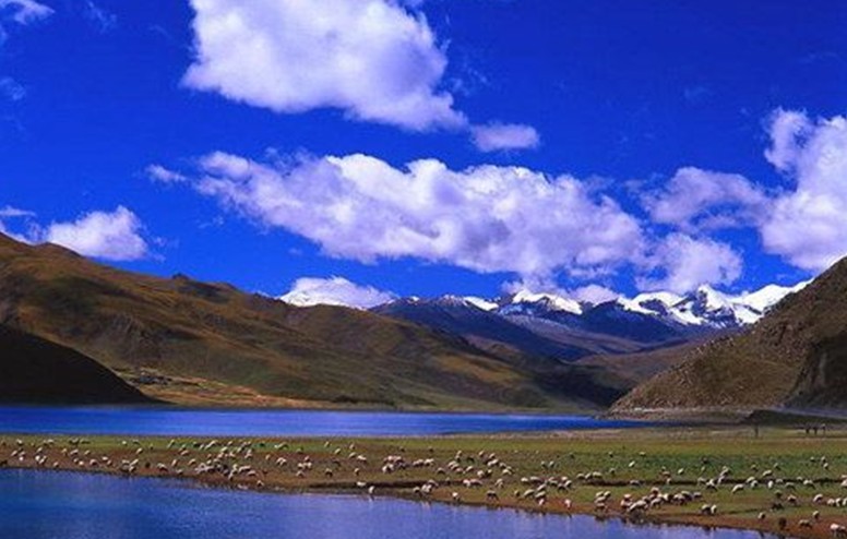 這汪藍色的大湖,形似一枚金剛杵,上圓中細下部長,四面群山環抱,清澈的溪流注入湖中,四邊還有四口泉池,朝圣的香客必在泉中沐浴,據說可洗去疾病和罪孽。東邊的當惹瓊宗傳說是古象雄國立木國王的王宮遺址,版權所有山東聊城聊之旅國際旅行社有限公司,轉載必究!也是修持明咒的塔米太格大師的靜修地,還是北藏伏經掘出地,在巖上有許多字母和掌印等天然痕跡。