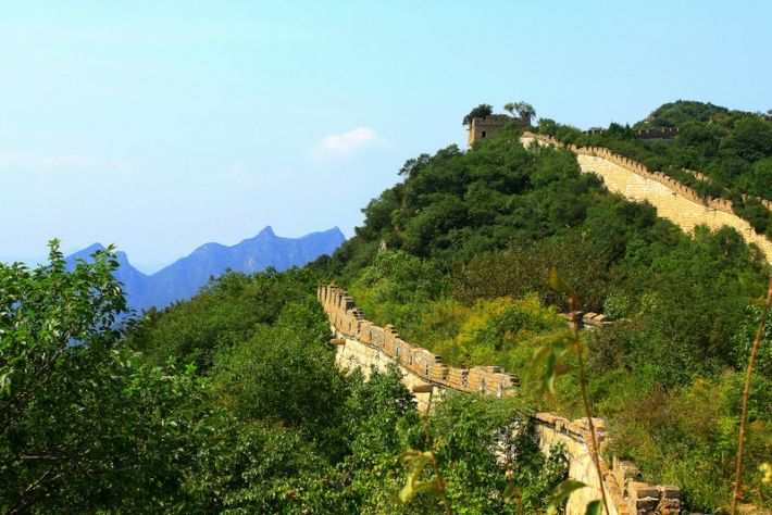 慕田峪長城景區草木茂盛,植被覆蓋率現今達96%,這種大面積植被是任何長城段都不可比的。慕田峪關臺奇特。慕田峪關與居庸關、山海關、嘉峪關等都不一樣,正關臺是由三座空心敵樓構成,通連并矗,兩側樓較小,中間樓較大,三座敵樓之上有三座望亭,關門不設正中,而是在關臺東側,進出關臺也是兩側敵樓設門,這種獨特的關臺建筑是萬里長城所罕見。